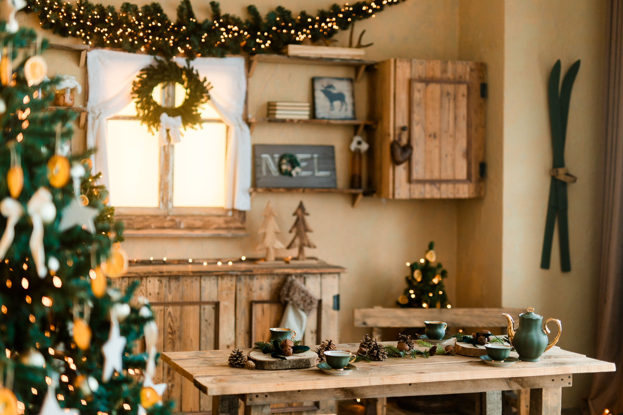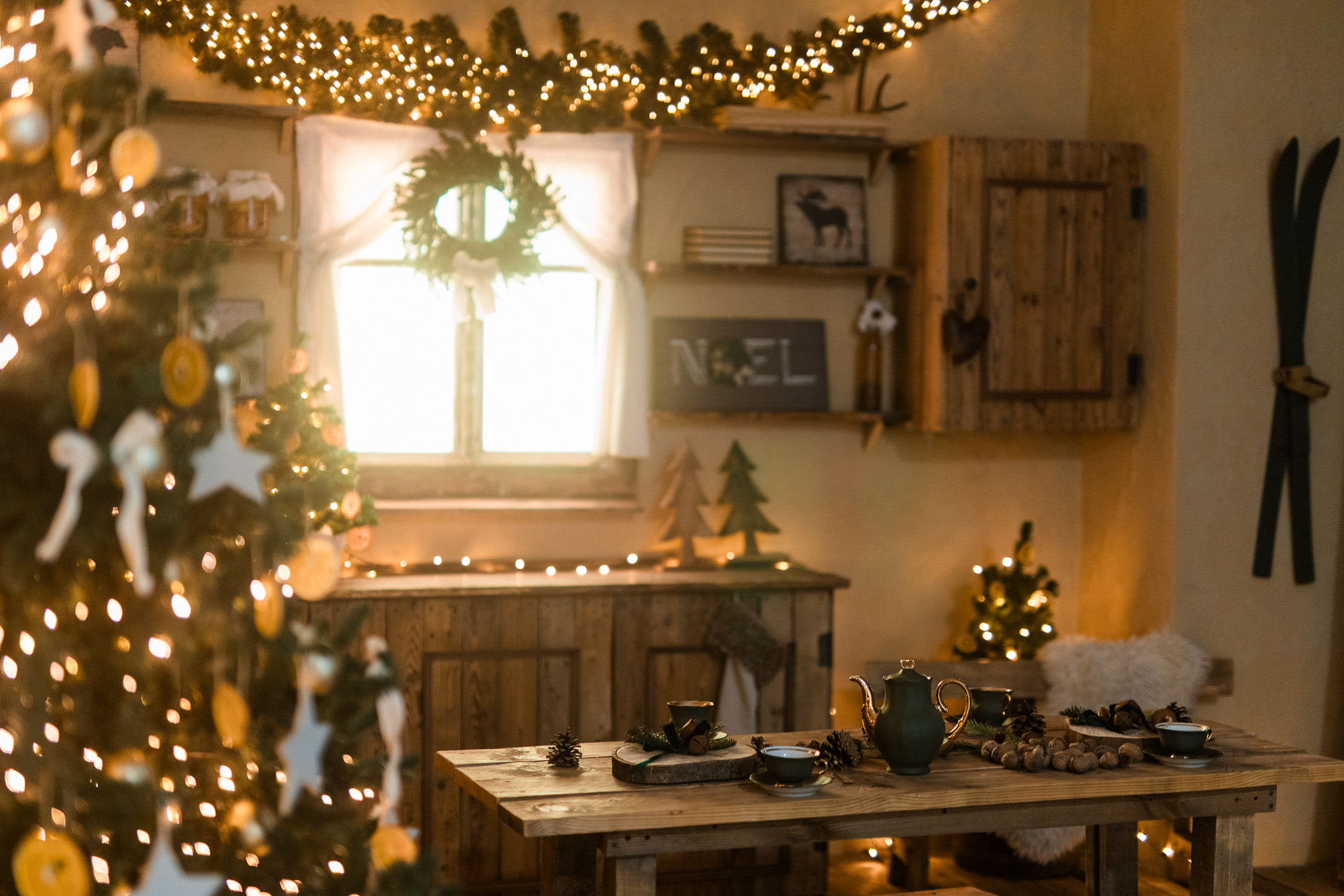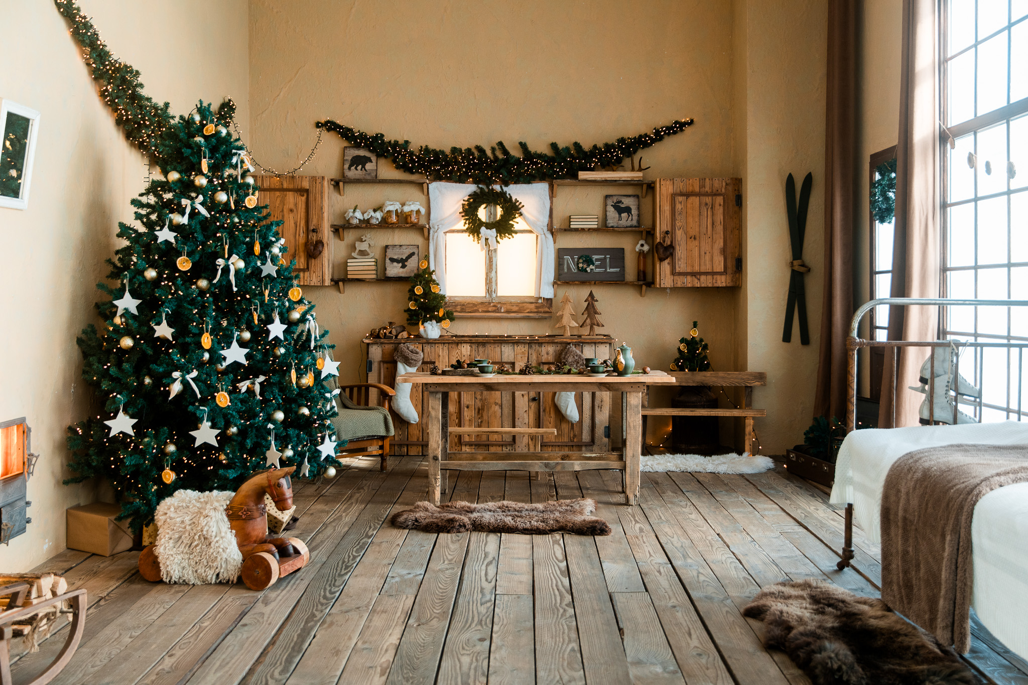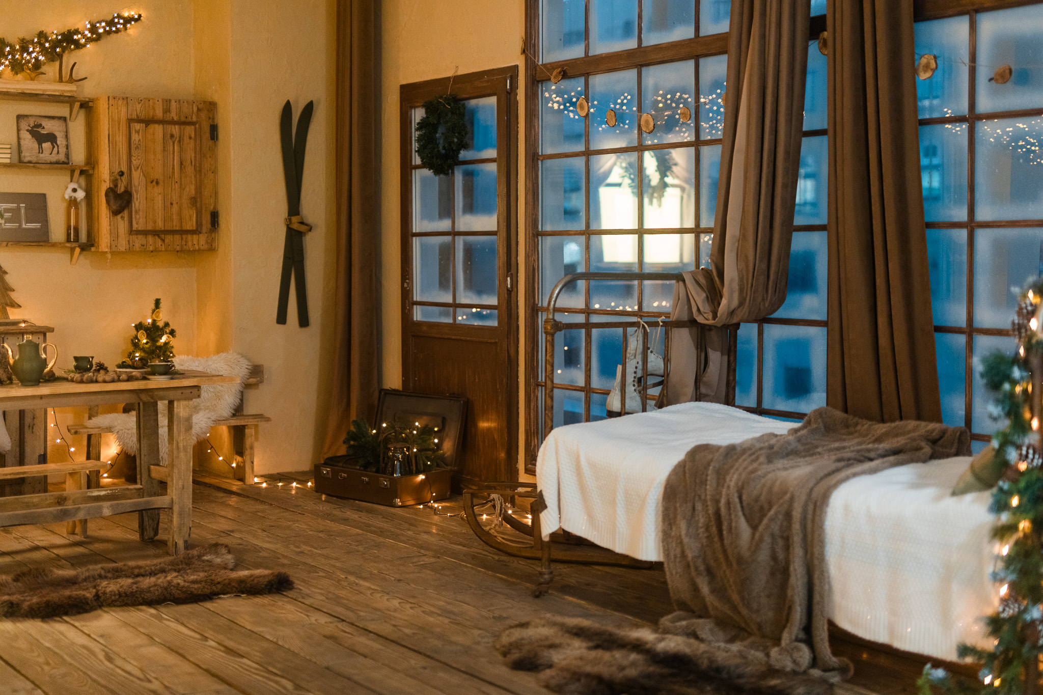 Sala Village din Studioul ArtStage cuprinde două zone distincte: una rustică, plină de căldura lemnului și a detaliilor tradiționale, și una albă, luminoasă, cu accente moderne. Decorul de iarnă adaugă farmecul sărbătorilor, transformând fiecare colț într-un cadru de poveste.